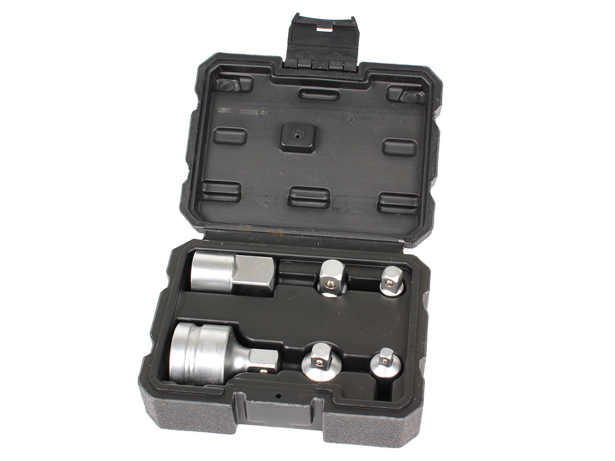 SKU: 017784Set adaptera za nasadne ključeve u plastičnom koferu - iz 3/8" u 1/4" - iz 1/4" u 3/8" - iz 3/8" u 1/2" - iz 1/2" u 3/8" - iz 3/4" u 1/2" - iz 1/2" u 3/4"