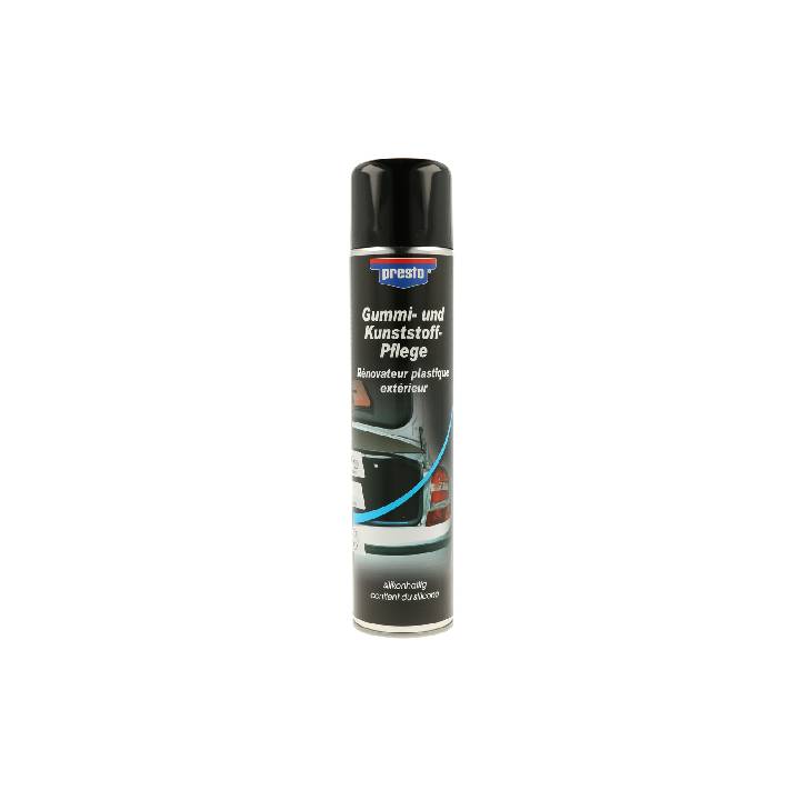 Sprej za negu i zaštitu gumenih i plastičnih delova. Osvežava izbledele boje na gumenim i plastičnim delovima na spoljnoj strani vozila. Čini da povrsina izgleda sjajno.