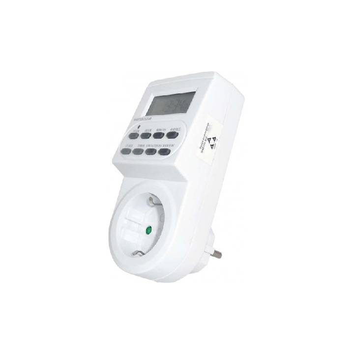 SKU: 12950Artikal:Programator digitalni Boja:Bela Radni napon:220~250V Snaga (procenjena):utičnice 3600W IP zaštita:IP20 Stepen električne zaštit.:I klasa Temperatura okoline:-10~ +40 °C Nazivna struja:16 In(A) Dnevno programiranje:24h Tip zaštite:Zaštita od dodira Broj ON-OFF programa dnevn.:10
