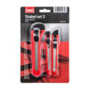 SKU: 8038Set se sastoji od dva skalpela od 9mm i jednog od 18mm. Kućišta skalpela su izrađena od kvalitetnog PVC-a. Koriste lomljiva sečiva.