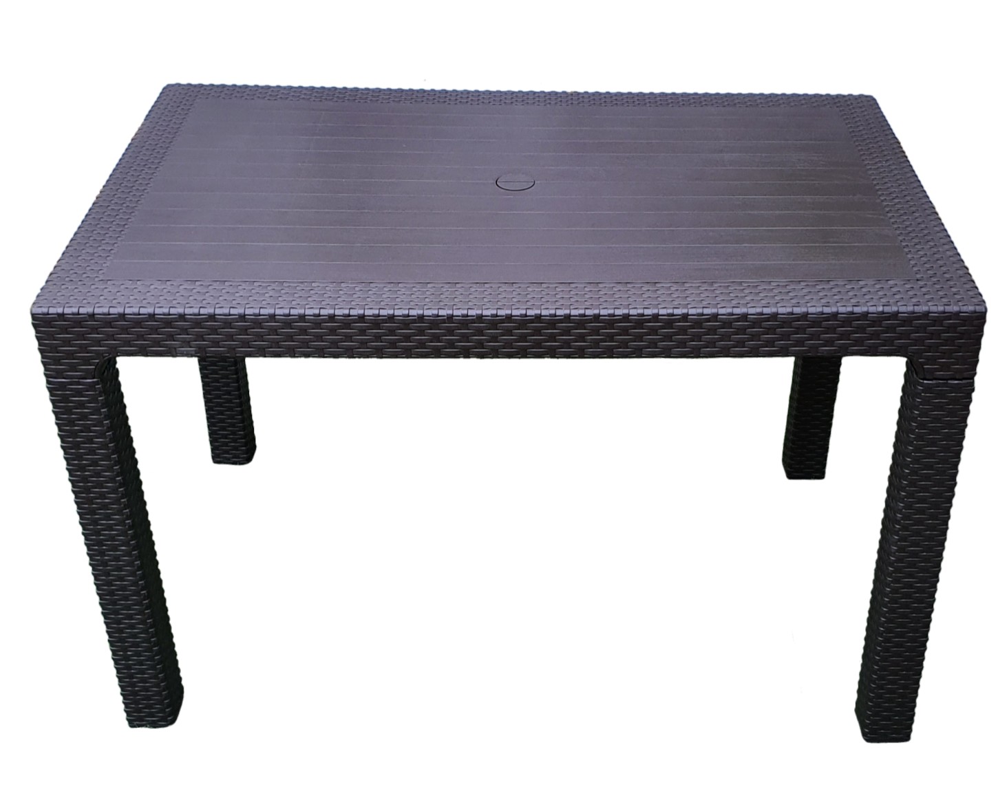 SKU: 018235Dimenzije : dužina 150 x širina 85cm x visina 72cm Sto modernog dizajna namenjen za sve prilike. poseduje rupu u sredini za suncobran Veoma čvrst i stabilan. Lako se sklapa Sa strane se nalazi kao imitacija ratana, dok je sredina urađena kao imitacija drveta, Ploča je ravna tako da je odlična ukoliko želite da postavite…